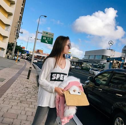 字母印花t恤女宽松打底衫韩版女装长袖V领白色大码T恤