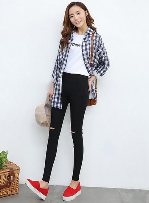 自知腿美就不要把它藏起来,否则多暴殄天物呐。高弹力的小脚裤能够将老天赐予的完美腿型和盘托出,高腰设计进一步拉伸双腿长度。上衣衣摆若能够盖住高腰位置,请聪明的你把它塞入裤腰里,如此才能取得胃部以下都是腿的成就。