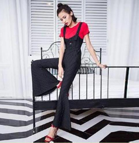 选择超显腿长的背带喇叭裤,而且还是腰线高的那一种,穿上一眼望过去都是腿,一米五穿成一米六五的既视感。