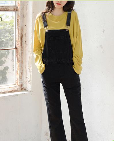 裤腿有点微喇的九分背带裤,是来自韩国的剪裁和版型,很有韩范儿青春美少女的感觉,使用棉弹牛仔布,弹性很好,质地也薄薄的,适合春夏季节~