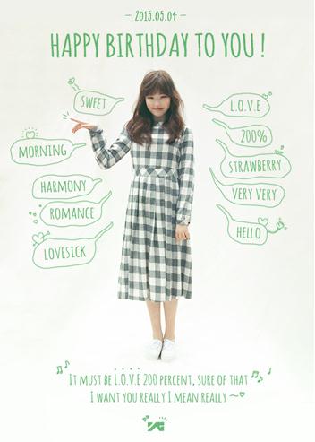 5月4日上午9点,在YG官方博客公布了一张李秀贤带有春天气息的照片,并写着“HAPPYBIRTHDAYSUHYUN”。在本次公开的照片中,李秀贤穿着绿色的方格连衣裙,摆着可爱的姿势。尤其是,李秀贤的纯净清新的微笑吸引了人们的视线。再加上...