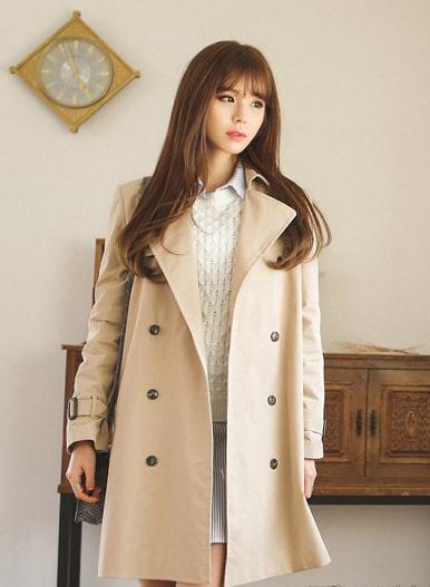 卡其色风衣经典必备,每个女孩都值得拥有一件,春天不想费心思搭配的话,就穿它出门吧,绝对错不了,搭配白色毛衣和衬衫连衣裙,简洁优雅,透着文艺气息。