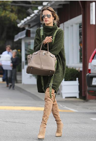 过臀到大腿处的款式,与过膝靴是天作之合,显高显瘦显腿长,这个季节穿最合适,内搭外穿都可以很出彩惊艳