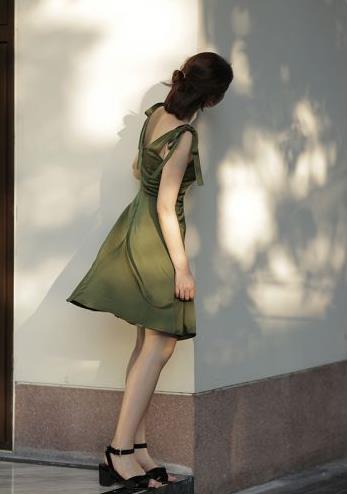 法式带点小性感的V领连衣裙,看LALALAND的时候觉得女主身上的蓝色V领连衣裙真的很好看!面料是带有光泽度的面料,上身是特别高级的。裙子用了小A摆的设计,带点俏皮的感觉,在肩部做了绑带的设计,甜美性感。