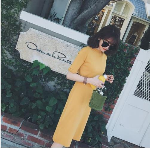 优雅气质针织短袖连衣裙 姜黄和灰蓝都美炸
