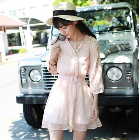 【优品推荐】 这款裙子以清新淡雅的水粉色衬托春天的浪漫气息,这个颜色很美,淡淡的,透着股水嫩嫩的清爽,不媚俗,以优雅的姿态获取存在感,整个人都显得干净,温暖,美好。