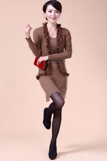 03 纯色中长款毛衣裙通过假两件款式获得丰富的层次,又能够不破坏简约干练的要求。女人味十足的木耳花边褶皱门襟精致繁复却没有丝毫花哨招摇的感觉。烫钻环扣腰链塑造出姣好比例。