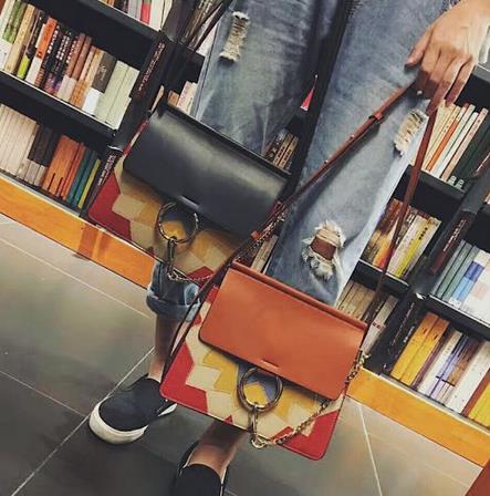 高圆圆同款包2017新款女包撞色小方包faye圆环链条包单肩斜挎小包