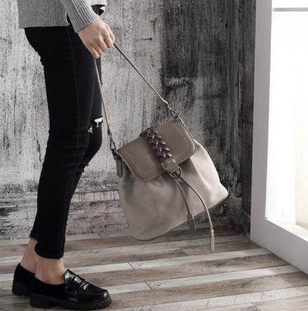 这是一款比较有名媛范儿的水桶包,包型比较大,所以日常背就很适合。内里完全可以装一些电子产品,甚至可以装杂志。包包的颜色比较性冷淡,浅浅的灰色很低调。包盖上的编织和拼接款式很有味道。