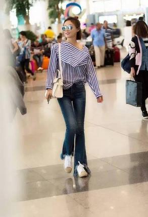 蓝白海魂风!袁姗姗一身法式风 时尚更多元