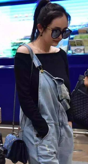 而且背带裤向来给人减龄呆萌效果,背带掉一半的穿法可以增加一点小性。