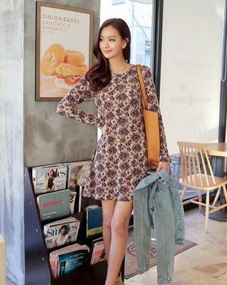 浅色的碎花连衣裙搭配上同样的浅色调是最好的选择。造型师深知这一点,所以没有选择一般女性都会选择的性感黑色来搭配而是用棕色鱼嘴鞋和淡蓝色的牛仔外套以及棕色单肩包进行组合,打造了一个春夏季的迷人OL,很棒。