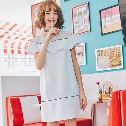 2017时尚穿衣搭配图片3:荷叶边直筒连衣裙
