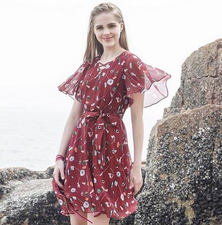 2017时尚穿衣搭配图片4:雪纺印花收腰裙