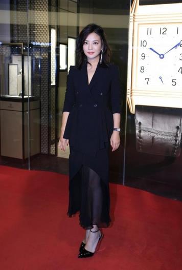 其实她最适合穿的还是西装搭点不规则的裙摆,像这样不规则裙摆,用网纱设计,性感又优雅得体。