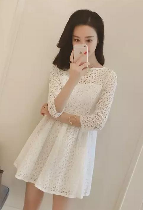 纯色系蕾丝连衣裙,无论单穿或者打底都是不错的选择,精致的纹理不会起球与扎线,蕾丝都是采用上等的材料,经过一道一道工序细细融合,通俗的叫法是蕾丝,其实更应该是刺绣~