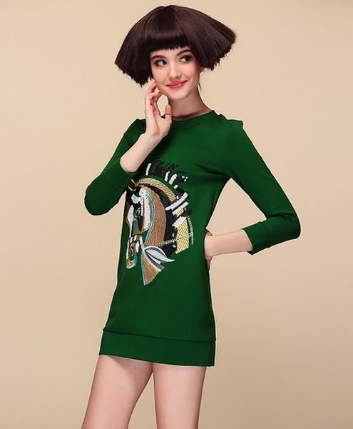 马上有钱,马上有房,马上有好工作,马上有桃花,马年的开始我们为自己准备了千万种期盼。一头憨厚的小马被印在连衣裙上,一不小心还完成了拼色的工艺,直筒裙也不仅仅只是端庄啊。