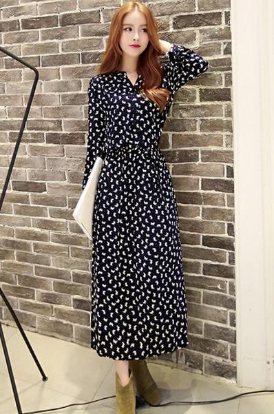 清浅的颜色本身就给人一种干净舒服的感觉,但是谁说小清新一定不能属于这种暗色系。不规律排布的点点白色碎花,星星散落在黑色裙摆上,多但不繁杂,给人感觉依旧是气质绝美的元气装备。