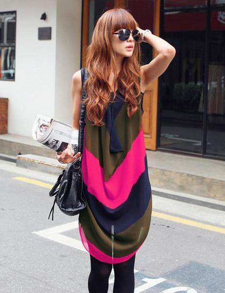 长T恤给人随性自由的印象,对于打造街拍休闲范儿是个好帮手,只要做好基本款的打底工作就能随心所欲的穿上身。轻薄微透的彩色条纹,肆意的涂抹着青春的色彩,明媚的红、沉静的蓝、阴郁的咖啡色,组成这般的率性模样,搭配大大的黑色机车包非常帅气。