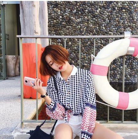 很有腔调的格子衫,时髦的蓝白色相间,袖子也做了泡泡袖和撞色的设计,更大程度上满足了人们对于个性的追求。