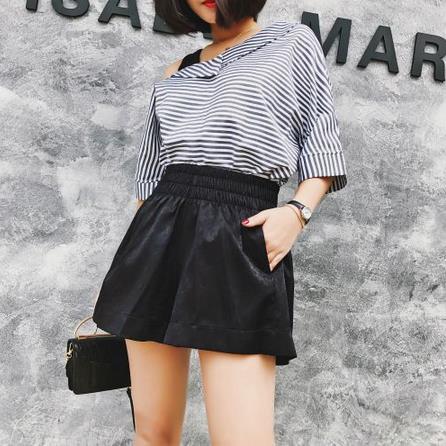 种场合都很合适的短款,时尚的A字版型设计,充满了浓浓的女性魅力。没有任何的装饰,连腰头都是一体式的,多片的剪裁拼接倒是让短款更合体了。高腰版型提高腰线,瞬间拉长腿线,纯色和任何上衣搭配都无压力。再配上一双浅口高跟鞋,分分钟拥有九头身