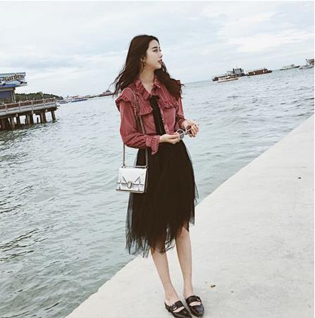 2017春秋新款女装不规则网纱半身裙蓬蓬裙高腰中长裙度假裙