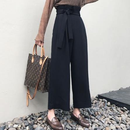 夏大牌剪裁高腰阔腿裤女9分裤黑色直筒裤