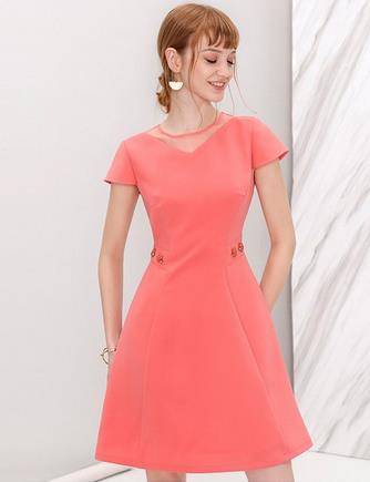 透视领手工钉珠连衣裙