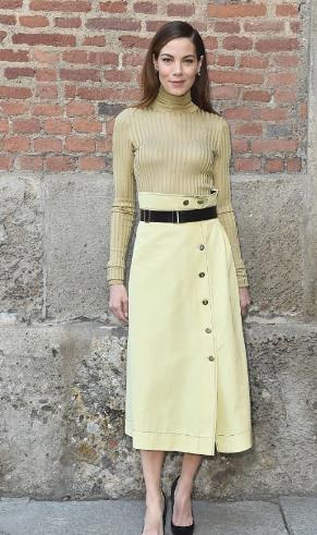 想这种针织衫搭配半身包臀裙就是白领上班族的最爱,裙子双排扣的设计英气十足,衣领木耳边的设计甜美又少女感。让整体造型严肃中又带点活力。