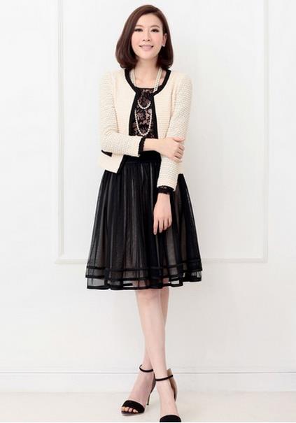 黑与白的经典设计,属于小香风的独特美感。安静的米色配合凝重沉着的黑色包边,给淑女最适宜的简练大方。长及腰部以上的短款外套,露出最清瘦的腰部曲线,瘦与婀娜分外显眼,内搭黑色连衣裙,最是养眼。