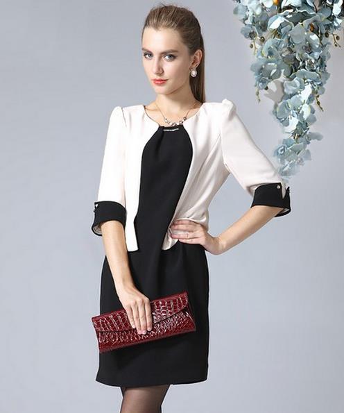 一衣抵三,最合精明偷懒姑娘的胃口。黑白拼接的假两件,有了连衣裙+外套的立体层次,却少了选衣搭配的繁琐,若是到深秋时节,又可作为基础款搭配风衣。很有想法的一款设计,适合优雅干练的OL丽人们。