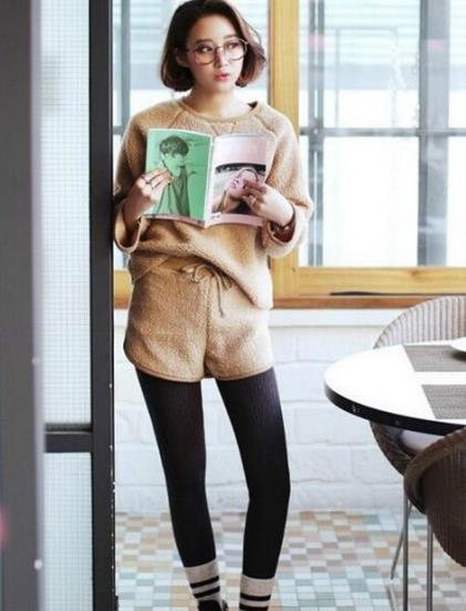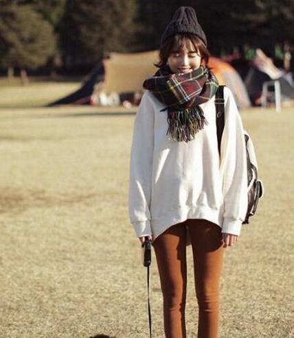 冬天出街,我们能经常看到不少韩国MM会这样穿,打底裤搭配厚线袜,或者这样的搭配让你看上去有些累赘,但是明显的层次穿搭,配上厚围巾也不会觉得头重脚轻。