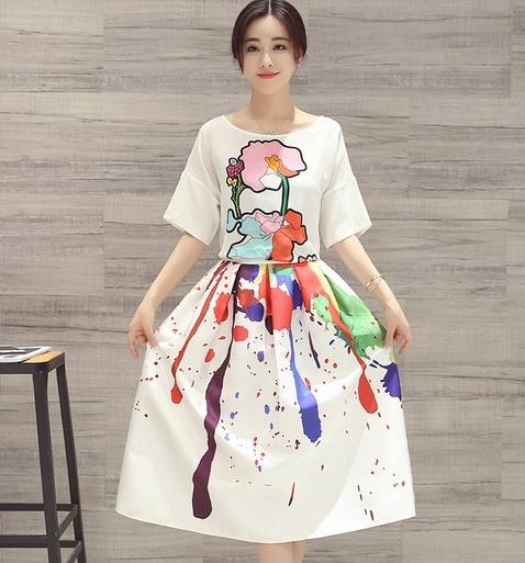 中袖印花裙套装