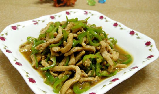 原产中南美洲的辣椒在明代传入中国后,因有开胃消食、散寒除湿的作用,在南方得以大量种植。青椒炒肉丝也随之成为普通家庭的盘中餐。清末进入富贵人家,据载,满族美食家、珍妃和瑾妃的堂侄孙唐鲁孙家试厨时,要求文火菜煨鸡汤,武火菜做青椒炒肉丝,其中“肉丝要能炒得嫩而入味,青椒要脆不泛生”就算合格。