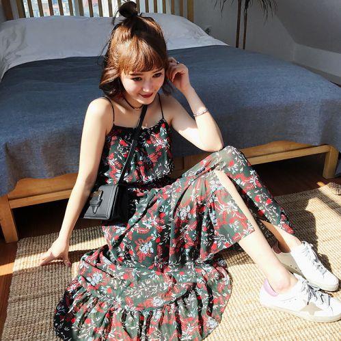 碎花裙穿出春夏文艺风,显瘦又有品位于momo夏装新款女士韩版吊带长裙无袖碎花雪纺连衣裙显瘦沙滩裙子
