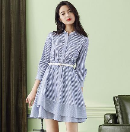 如何搭配服装更时尚推荐8:不规则条纹衬衫裙