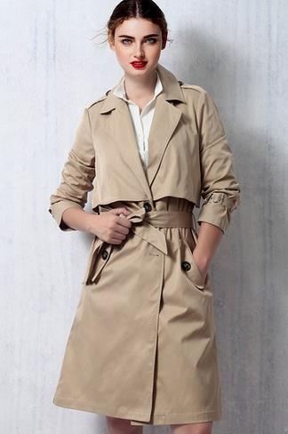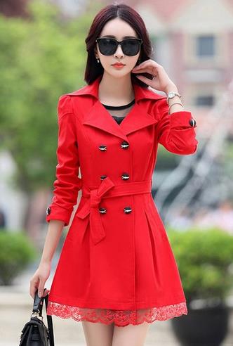 蕾丝花边双排扣风衣