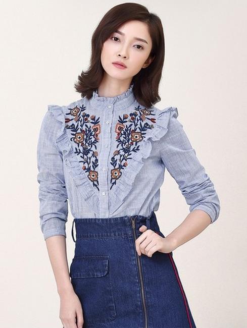时髦元素多而不杂风格统一很重要,荷叶边、刺绣都是复古精美的细节,按V形排布视觉完美聚焦很有收敛的功效,配简洁利落的高腰下装,或文艺或知性通勤都错不了。