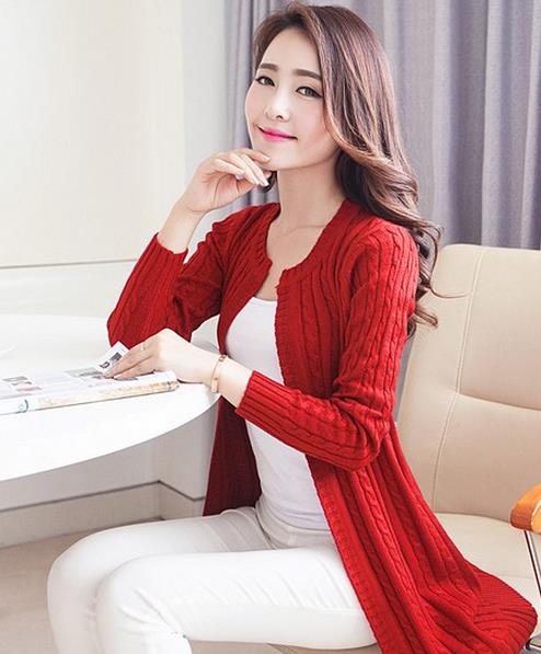 还是中长款,颜色也很亮丽,不过款式却相当简单大方,经典的麻花纹勾起小时候的回忆,怀旧的纹路沿着衣身勾勒出流畅的曲线。虽然款式上并不花哨,但已经足够展现你的别具风情的一面。