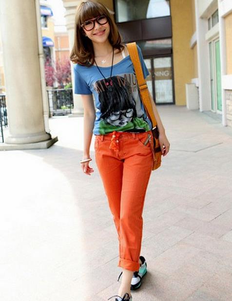彩色休闲裤是非常不错的给自己身上加点色彩,同时又不会太过的方式。大牌的板型裁剪设计,极致修身的造型特点,不可错过哦。
