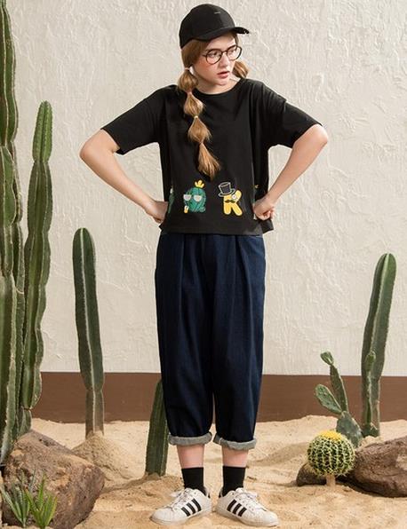棉麻短袖往往和民族风联系上,但未必不能让它从文艺走向休闲的领域。整体A字宽松款,直接和牛仔短裤或者短裙搭起来,显瘦的同时还很显高。