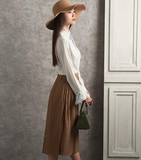 白衬衫+百褶长裙。文艺的感觉就是这么一瞬间,抬头望见窗外的风景,正好把自己站成了风景。文艺专属的色彩使得百褶裙很是挑剔,但不管怎么样都不能拒绝白衬衫的痴情,搭配出最美的出街风景。