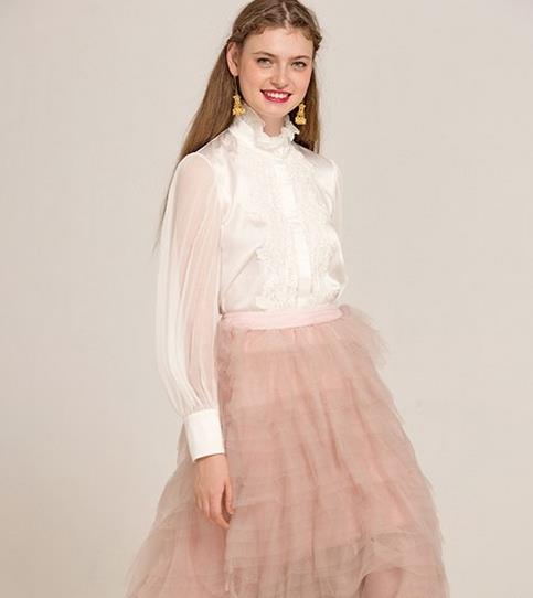 白衬衫+蓬蓬裙。粉色的甜美在网纱的堆叠下超越其它,这并不是适合任何人的半身裙,但白衬衫适合它。相同的材质让它们有更多共同话语,在简单和复杂的对比中,我们显然很容易被征服。