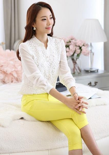 一进入春天,许多轻盈的元素就会回归,比如飘逸雪纺,比如梦幻网纱,又比如婉约蕾丝。当这三者携手出现时,你无法抵挡它的魅力。雪纺袖子若隐若现透视着性感,蕾丝绣花精美绝伦仿若艺术品一般,如若配一条亮色的裤子,整个人顿时明媚起来,不负于春光。