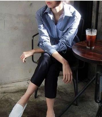 女生蓝色条纹衬衫搭配:怎么搭配都
