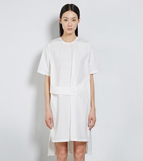 打破规则的立体剪裁,将赘肉妥妥藏住,前短后长下摆也有转移视线忽略赘肉的功效,单侧宽腰带束腰显曲线事小,标出腰线位置拥有好比例才是主要目的。
