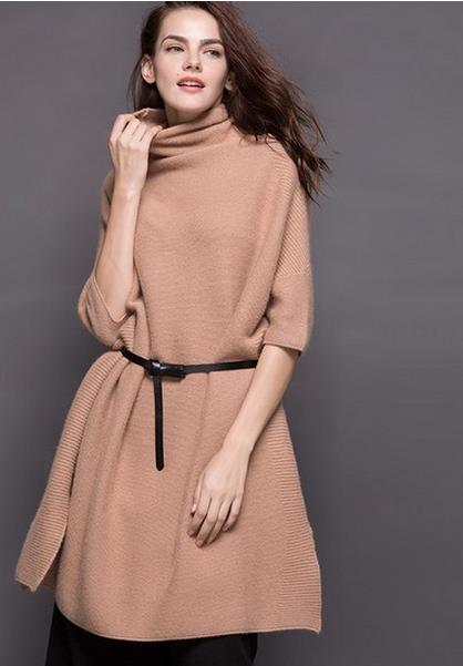 貂绒高领宽松毛衣裙