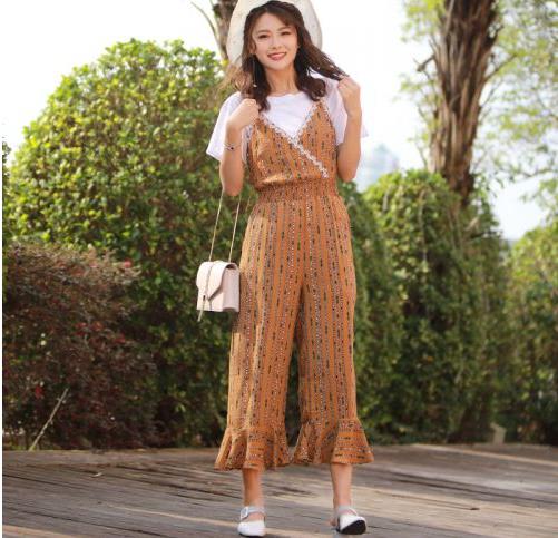 夏季清新甜美日系复古风显瘦T恤九分连体阔腿裤女两件套