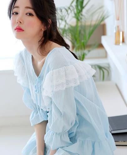 睡衣七分袖韩版春季少女蕾丝学生家居服睡衣女春秋