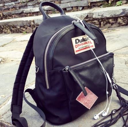 牛津布的包包特点就是耐用又结实,很适合学生背,日常搭配也很赞。黑色的包包不太挑衣服的颜色,所以比较经典百搭。包包内袋的设计很人性化,可以装体积比较大的书,夏天也可以装件防晒衣。